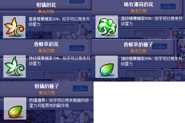 一件裝備可以升級十星,每次升級需消耗 「花/種子+楓幣+楓點」